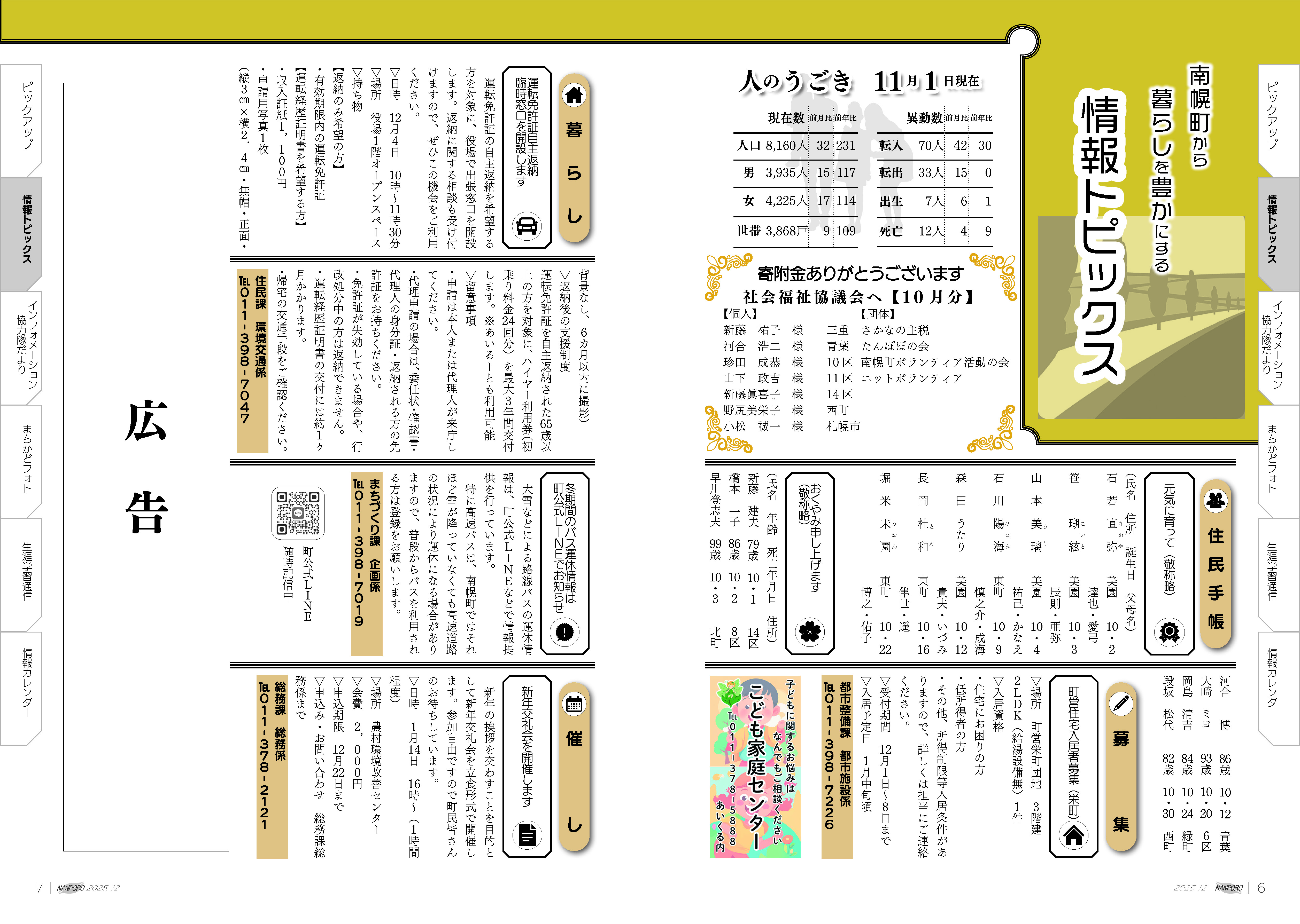 南幌町では、町外に居住される方で、広報なんぽろの購読を希望される方に対し送付を行っています。