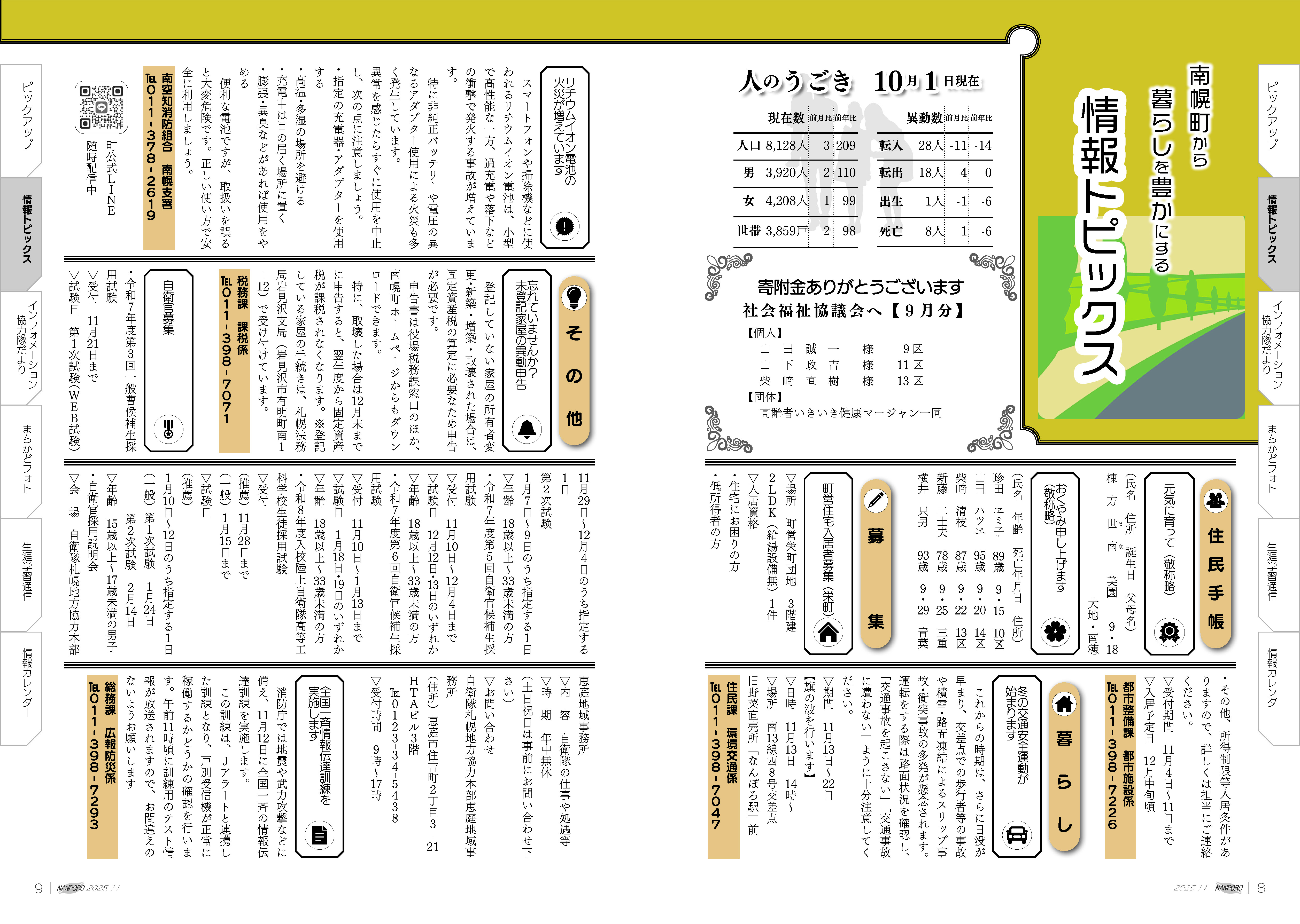 南幌町では、町外に居住される方で、広報なんぽろの購読を希望される方に対し送付を行っています。