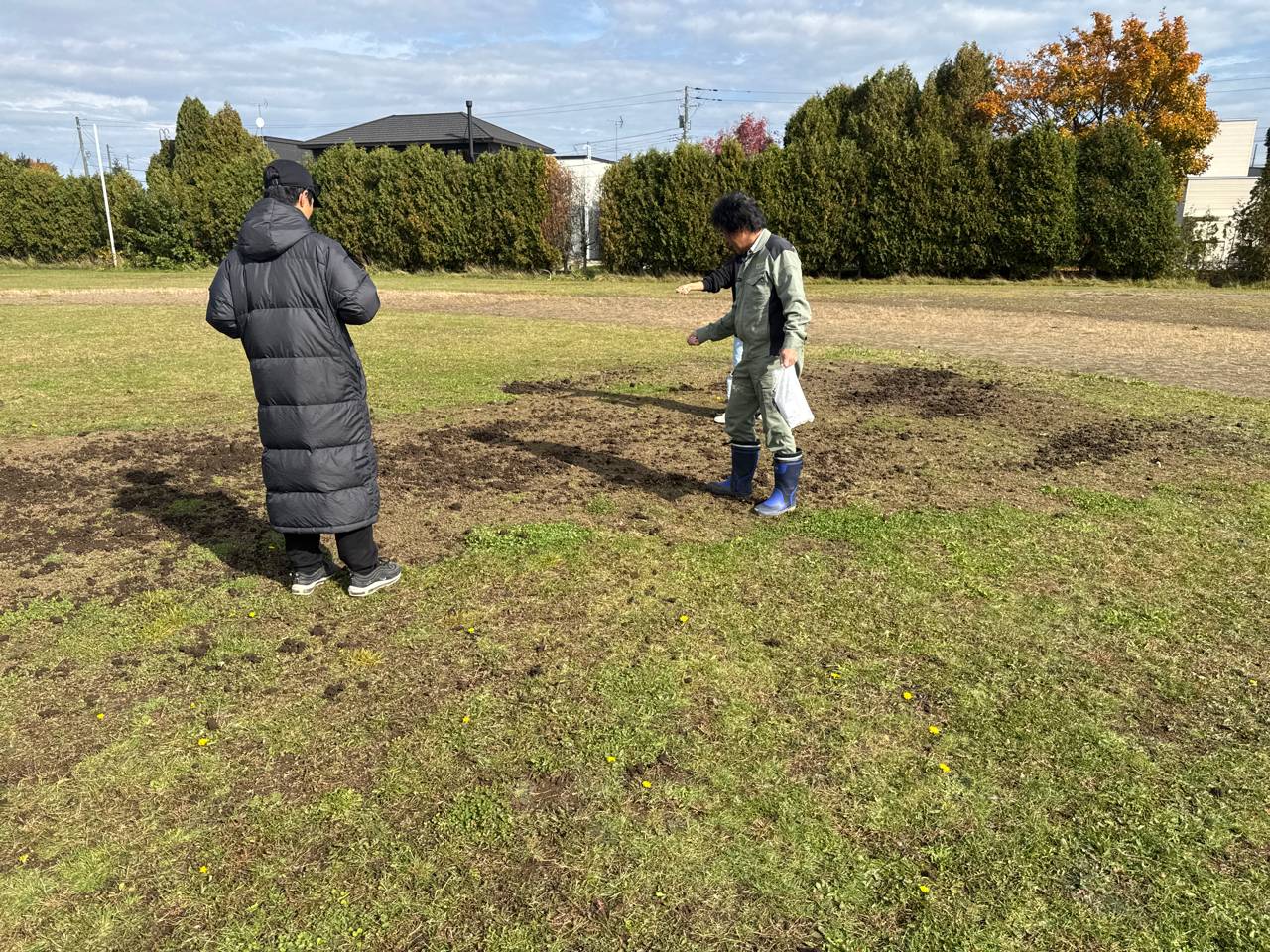 【南幌小学校グラウンド芝張替・築山修繕・中庭植栽剪定】