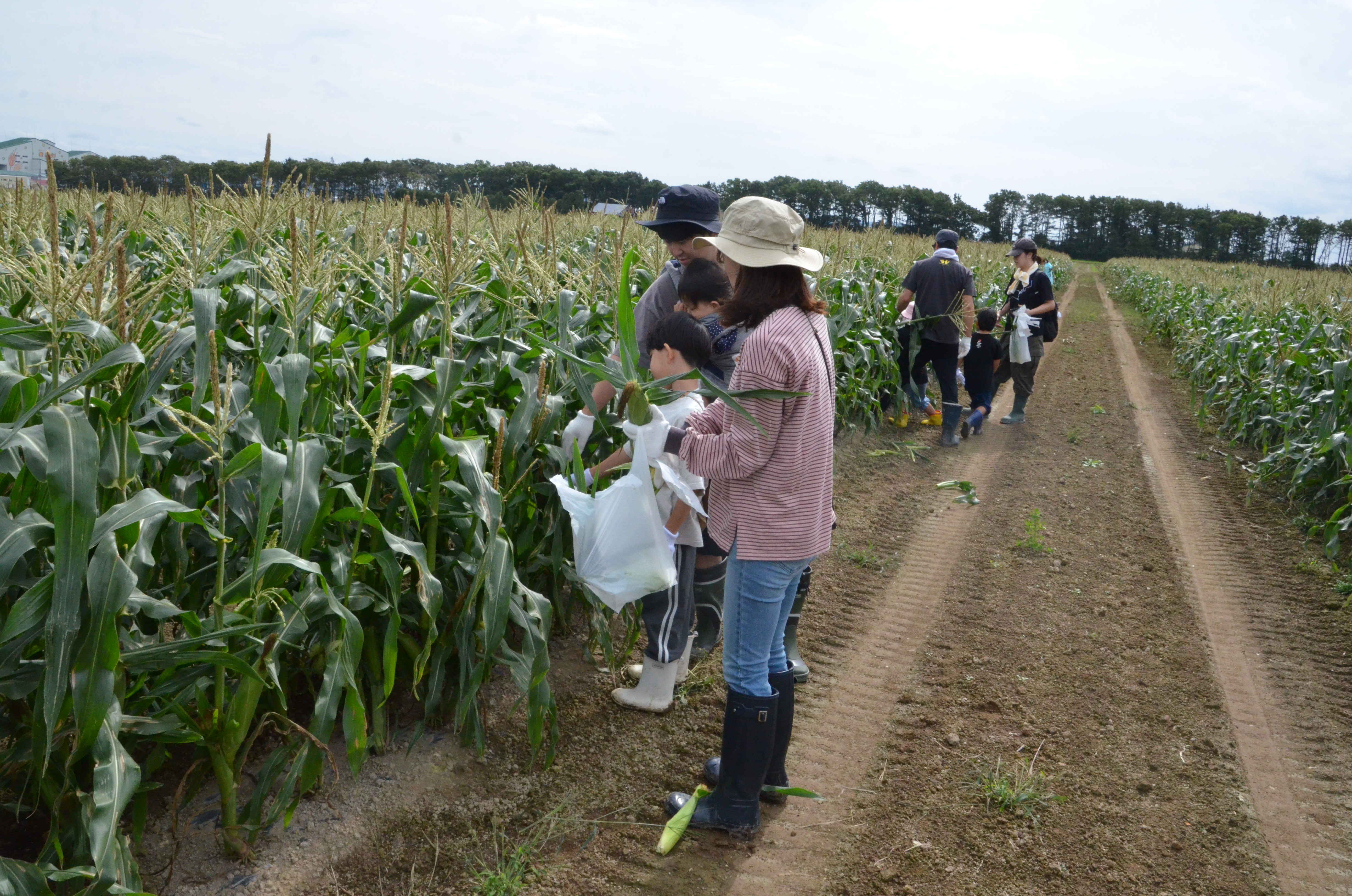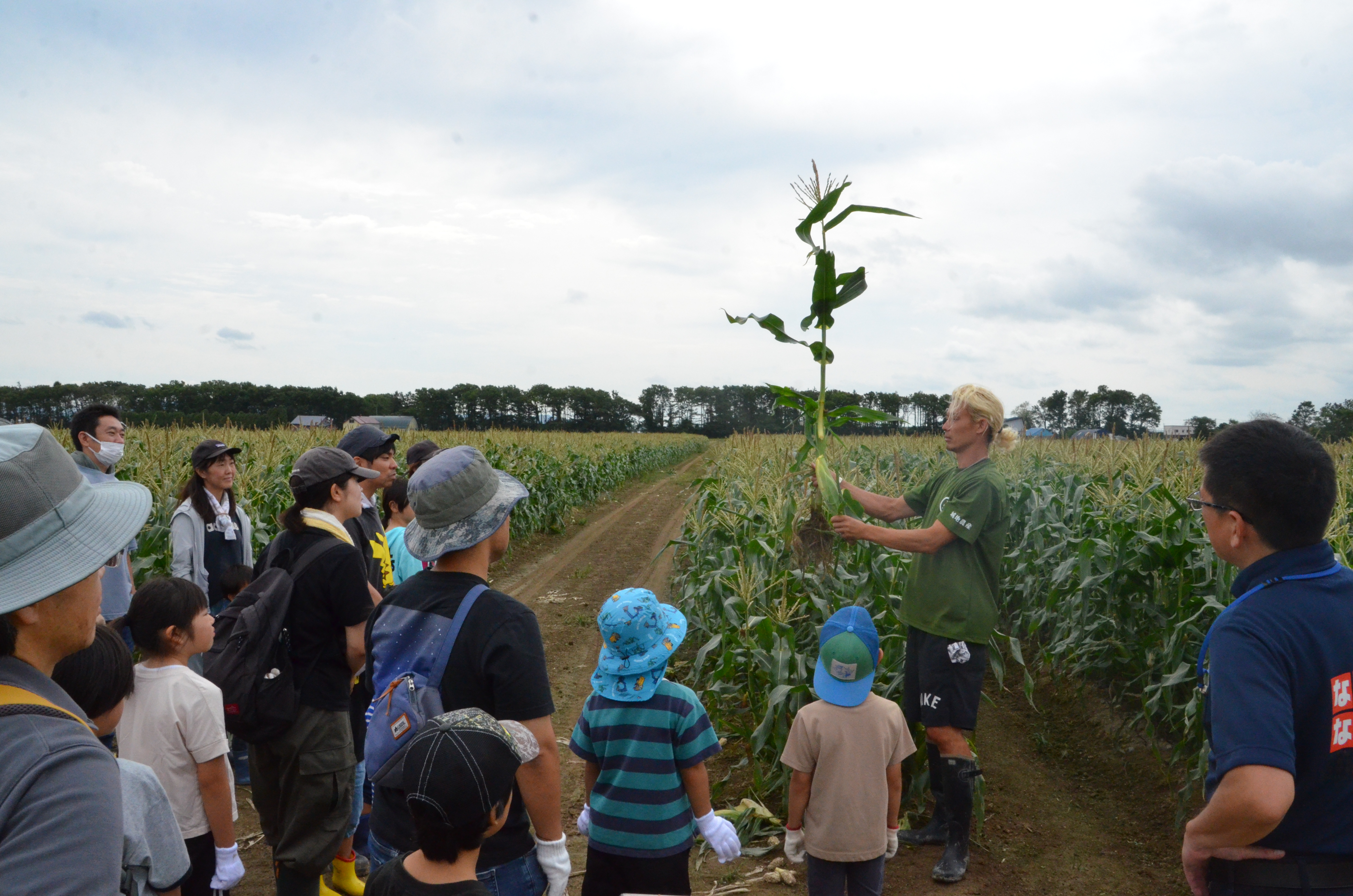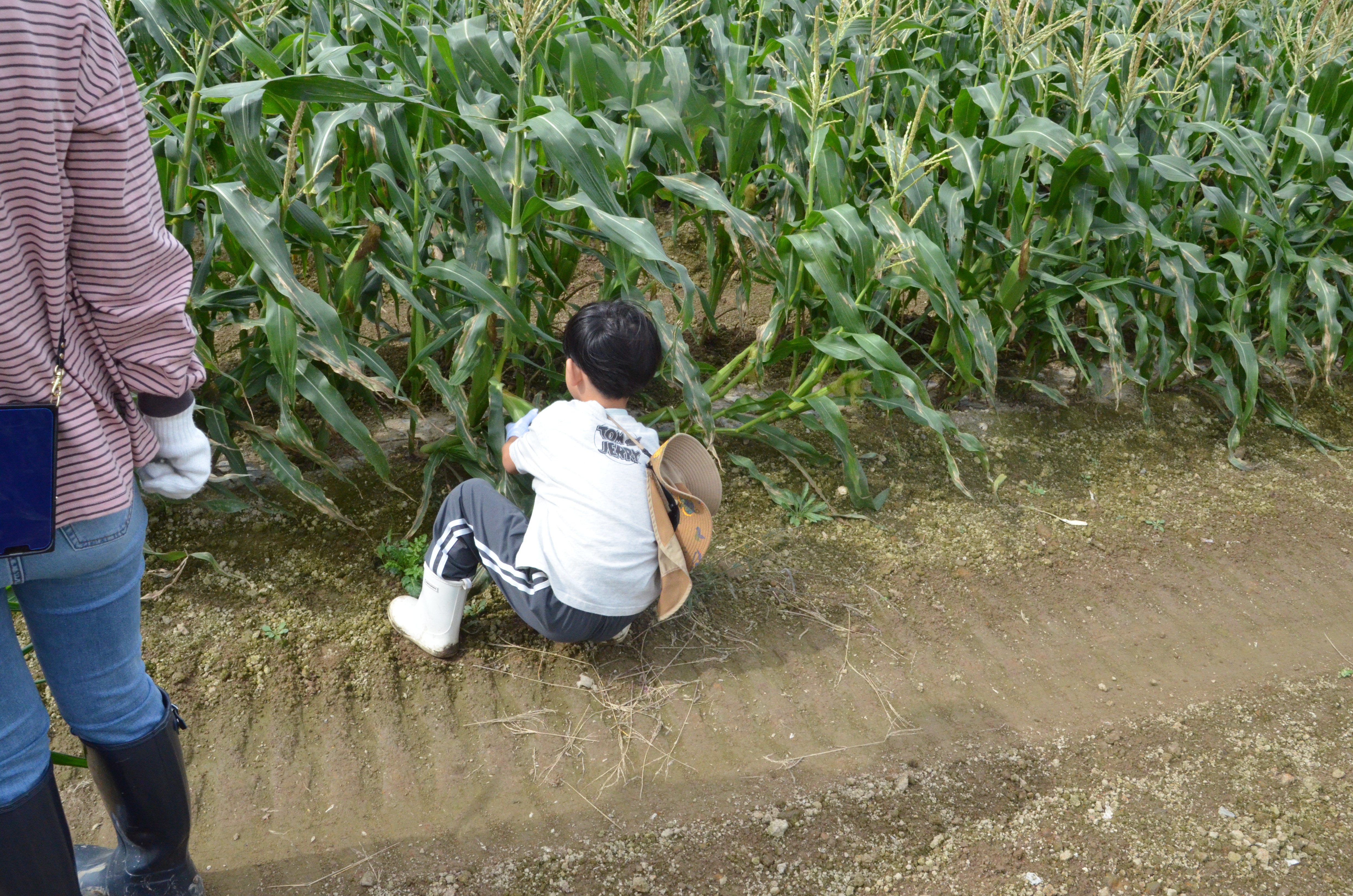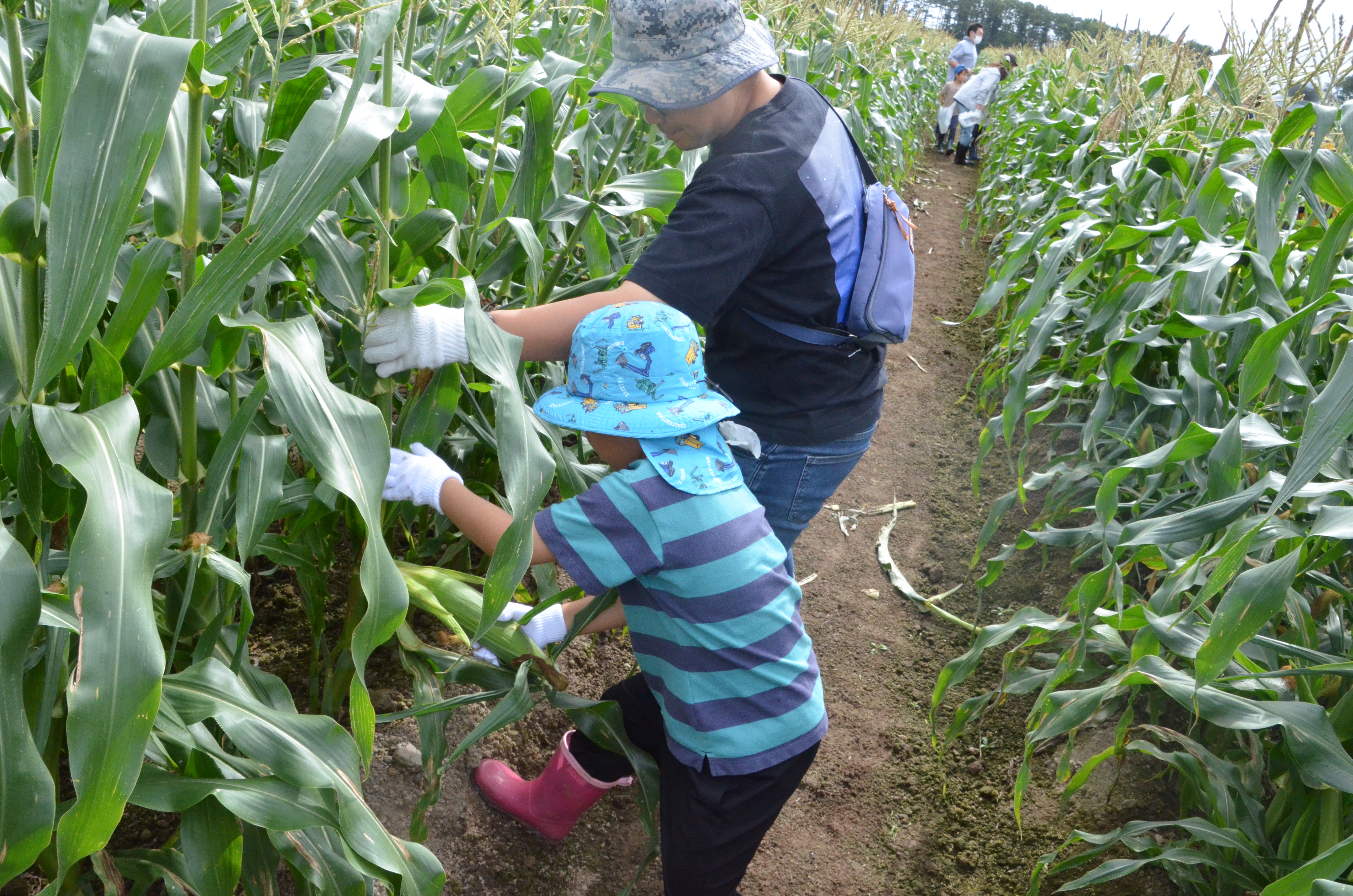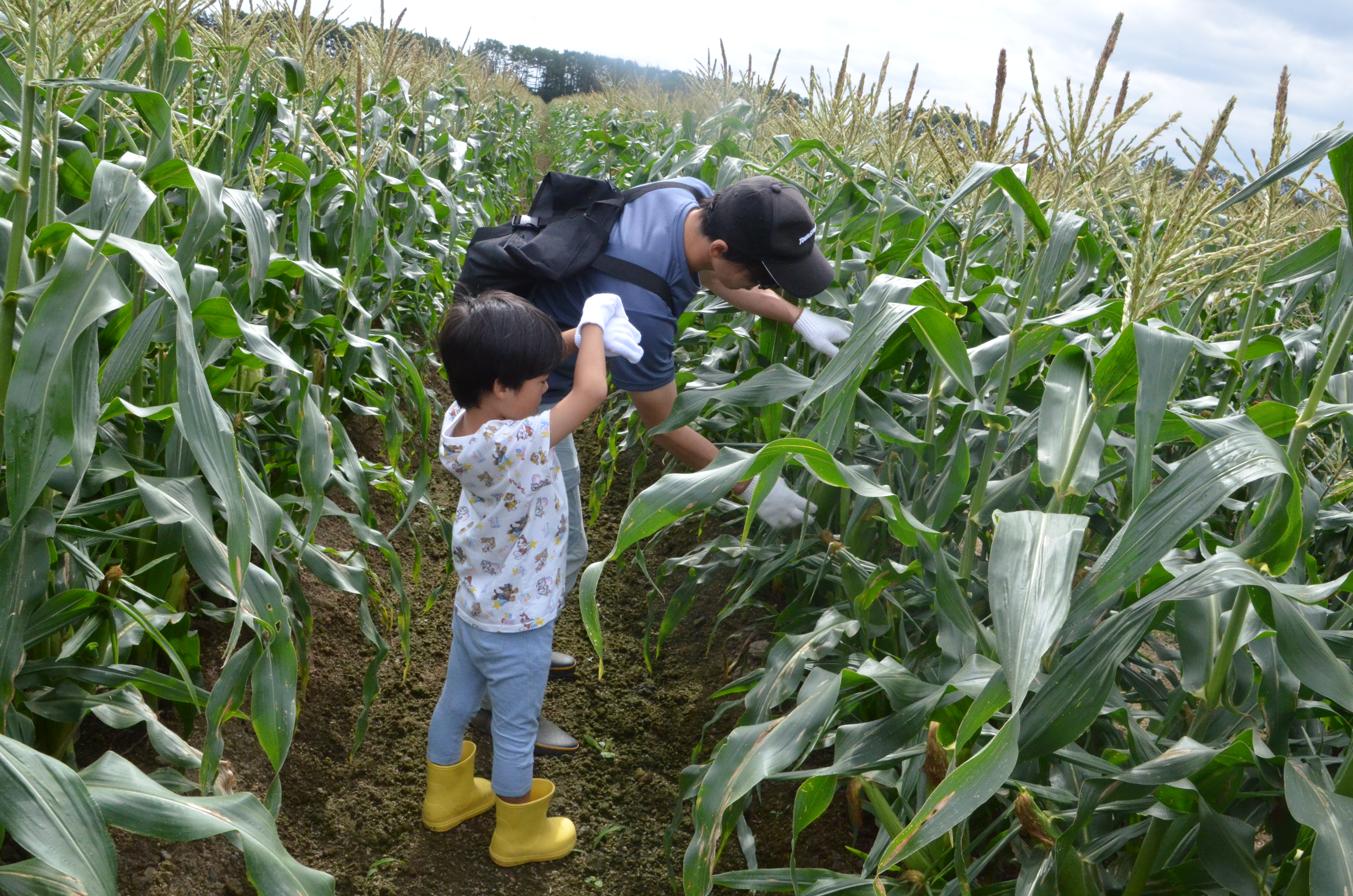 町内の若手チーム「農猿」に協力をして頂き、とうもろこしの収穫体験と枝豆の収穫体験を行