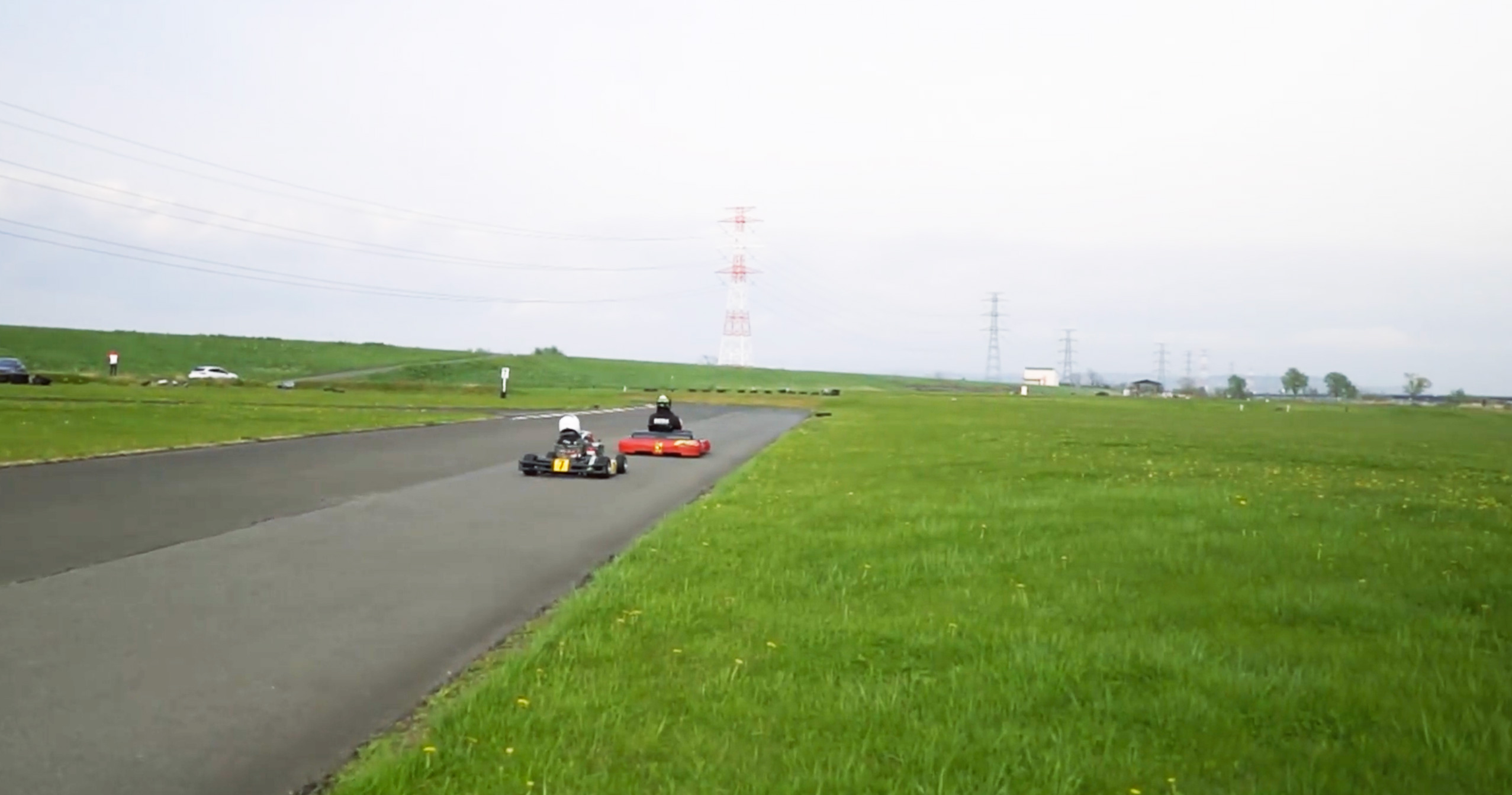 カートマシンは、車高が地面から2cmととても低いため、驚くほどの速度とG(重力加速度)を体感できます。そしてGを利用しながら操縦していくので、車を運転するのとはまた別物。そのダイレクトにくる臨場感はコースを走った人にしかわかりません。