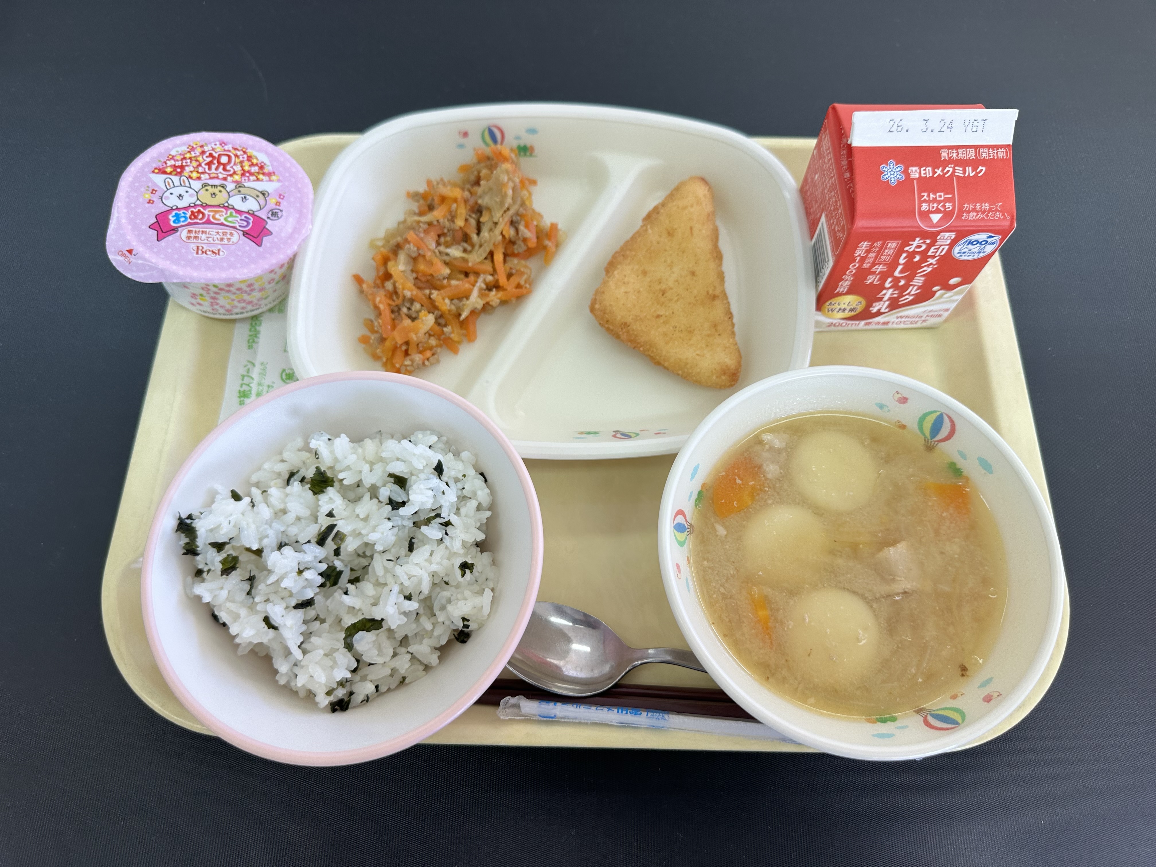 学校給食は、成長期にある子どもたちが栄養バランスのとれた適切な食事を先生や友達と一緒に食べながら、心と体の健康の増進を図るものです。